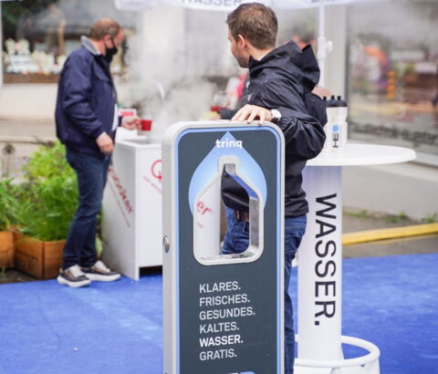 Ob am SlowUp Bodensee, am Tag der offenen Tür oder sogar an einer Filmproduktion – mit den mobilen Stationen von trinq hat man immer einen gesunden Trunq zur Hand!
